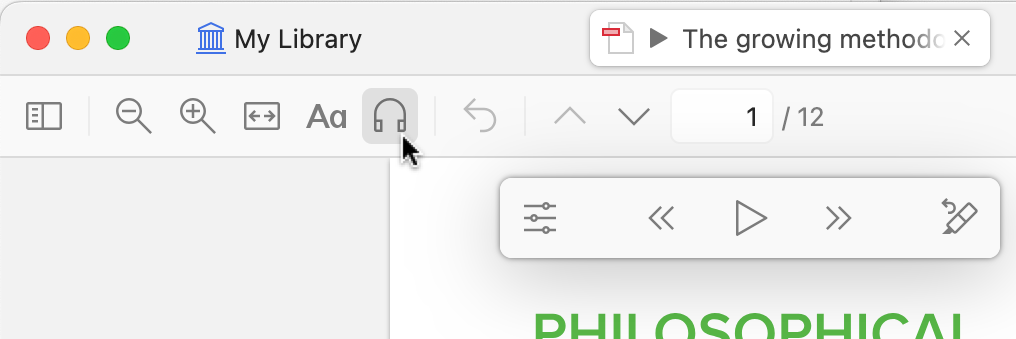 To get started, just click the headphones button in Zotero’s reader toolbar.